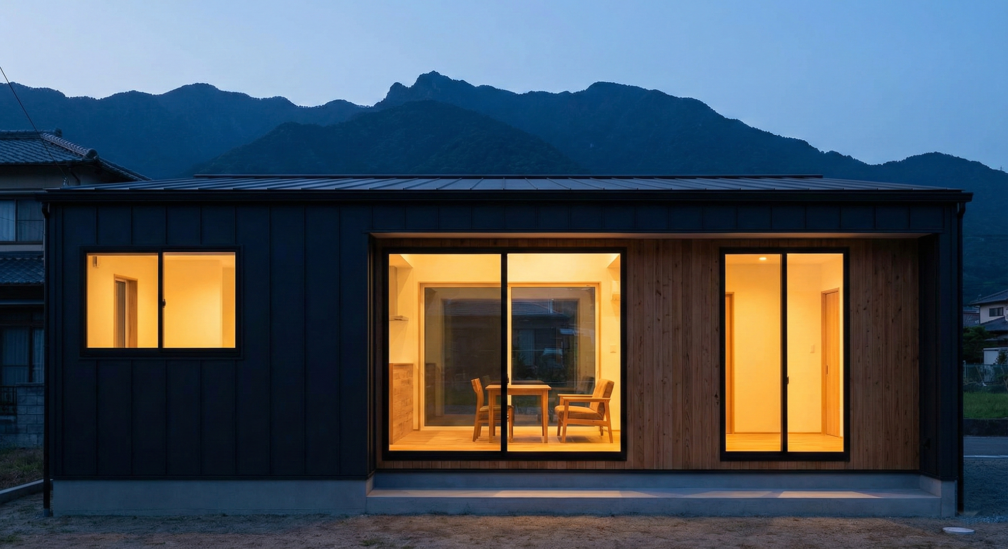 冬は、低い位置からの太陽光をリビングの奥までたっぷりと取り込み、部屋全体を暖かく包み込む。夏は、深い軒(のき)が強い日差しを遮り、計算された窓の配置によって、石鎚山からの涼しい風が家中を通り抜ける。