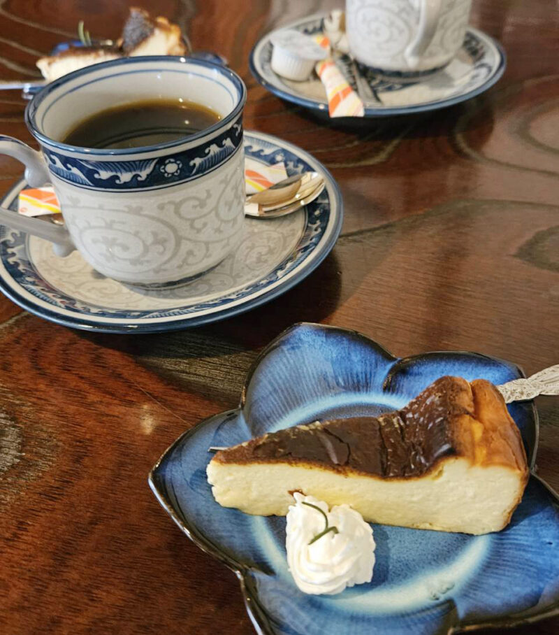 食後にはデザートセットもいただきました。 こんがりと焼き色のついたバスクチーズケーキは、濃厚ながらも後味は軽やか。 丁寧に淹れられたコーヒーを飲みながら、友人と静かに語らう時間は、まさに至福のひとときでした。