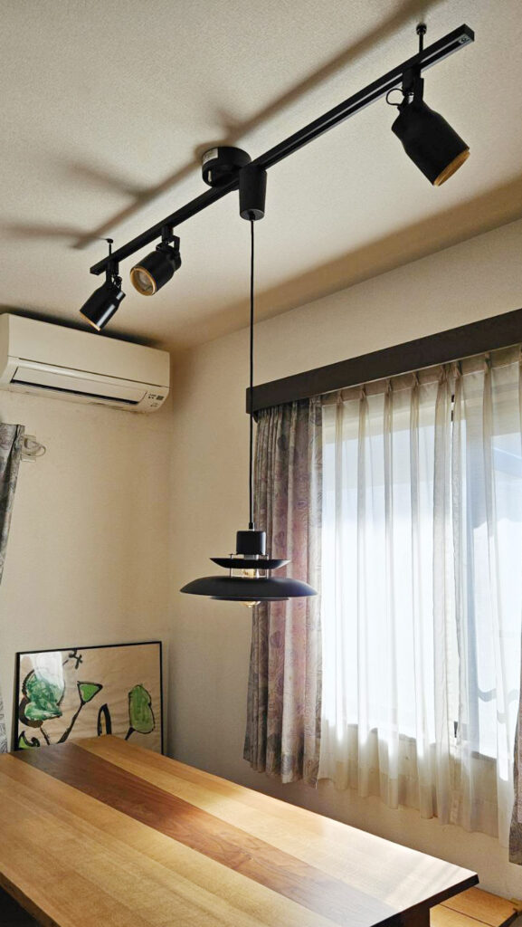 ダクトレール+スポット+ペンダントでカフェのような雰囲気に。