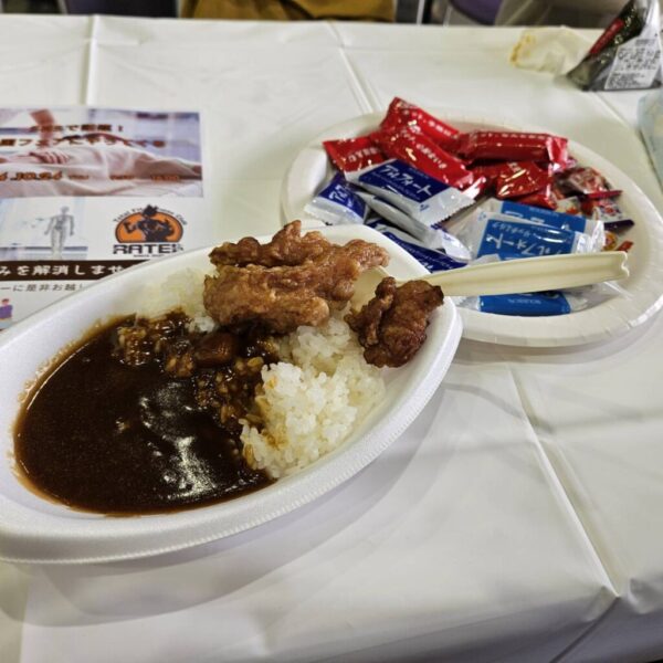 昼食には、フェア恒例の無料カレーが提供されました!スパイシーで元気が出る味、これがフェアの隠れた楽しみでもあります。新しいアイデアと、少しの筋肉痛(?)をお土産に、来年もまた参加したいと思います。